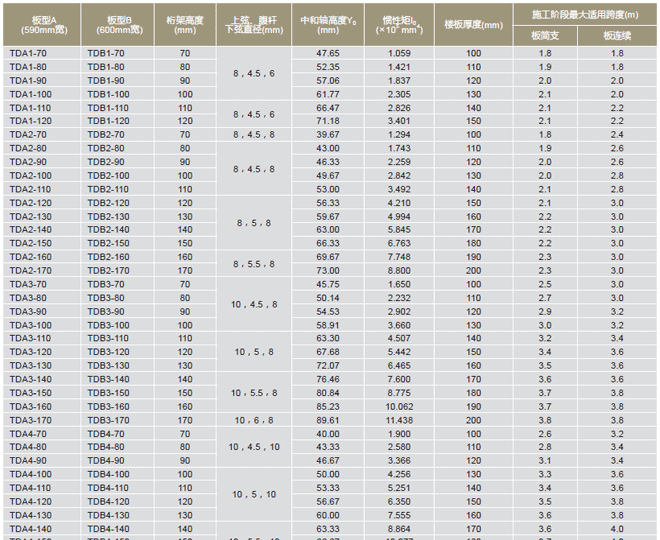 關(guān)于鋼筋桁架樓承板A和B是目前的主要推廣的。鋼筋桁架樓承板產(chǎn)品有兩種,a型產(chǎn)品寬度590mm,B型產(chǎn)品寬度600mm,接下來小編為大家介紹一下這兩種產(chǎn)品的具體型號(hào)、尺寸和截面系數(shù)。